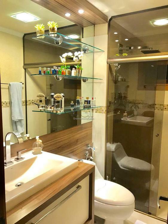 Com dois dormitórios sendo duas suítes e três banheiros.