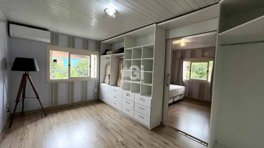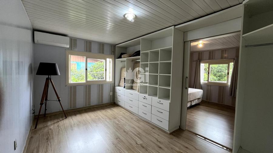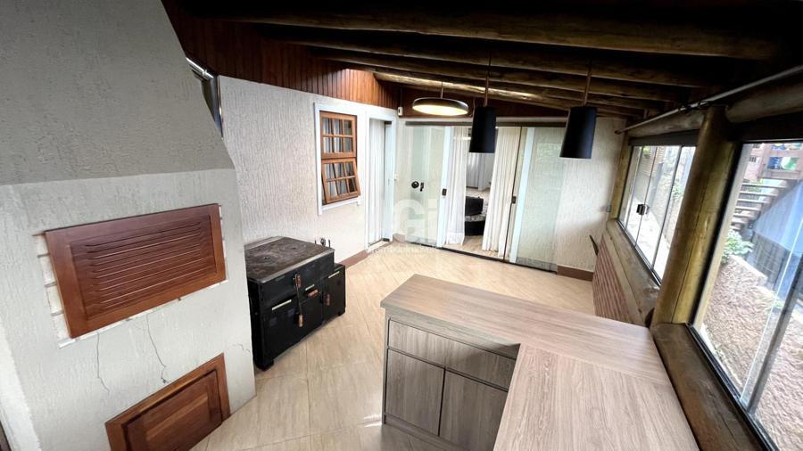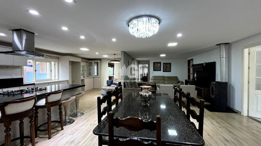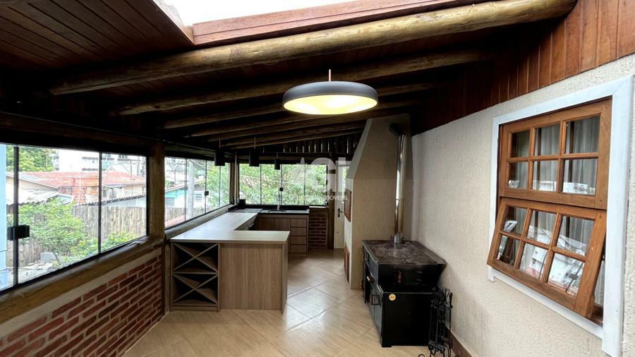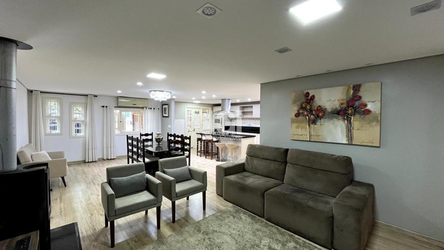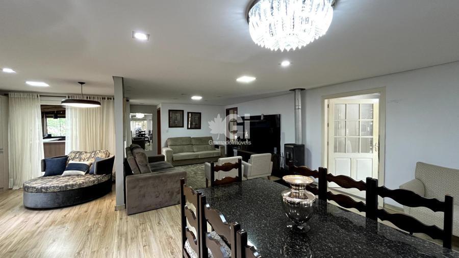 A casa também oferece comodidades como lavanderia, garagem e sistema de climatização com splits, além de um calefator para aquecer os dias mais frios da Serra Gaúcha. Para receber amigos e familiares, um segundo espaço gourmet foi cuidadosamente projetado, equipado com churrasqueira e fogão a lenha, tornando-se o lugar perfeito para encontros e celebrações.