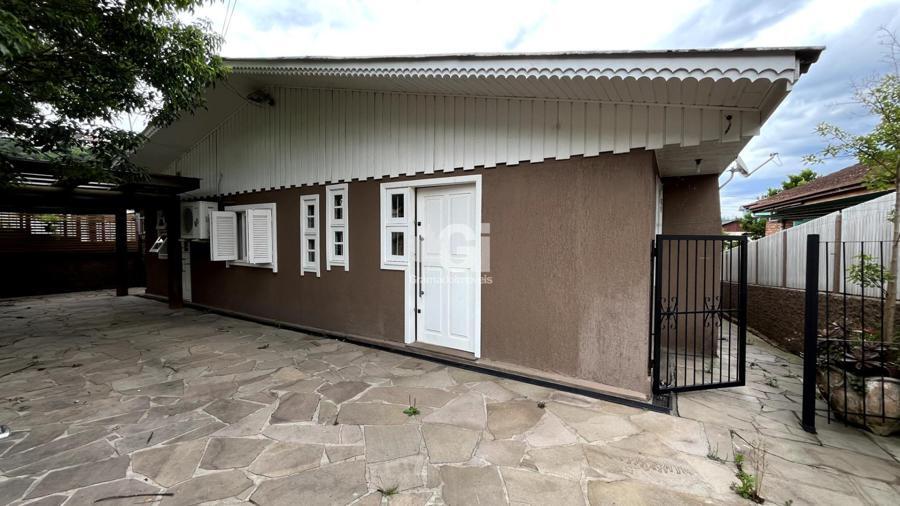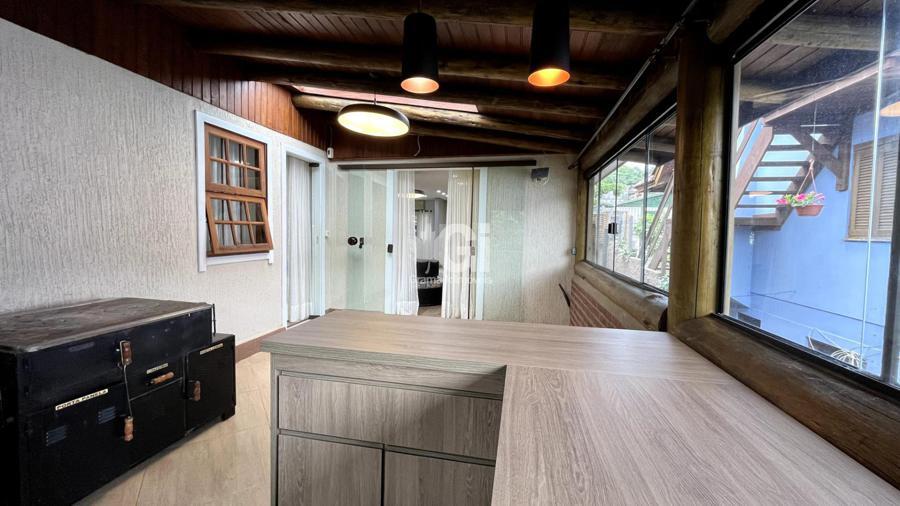 A residência conta com três dormitórios, sendo uma suíte acolhedora, além de um banheiro social. O living integrado ao espaço gourmet cria um ambiente convidativo para convivência, com uma cozinha moderna que dispõe de bancada em ilha e coifa, ideal para preparar momentos especiais.